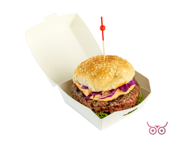 Maak een milieubewuste keuze met onze Hamburgerdoos, vervaardigd van stevig 250g karton, gemaakt van gerecyclede materialen. Ideaal voor gebruik onderweg of thuis, met de mogelijkheid voor een custom print voor een persoonlijke touch. Deze verpakking is niet alleen praktisch, maar ook volledig composteerbaar, wat hem perfect maakt voor bewuste consumenten.
